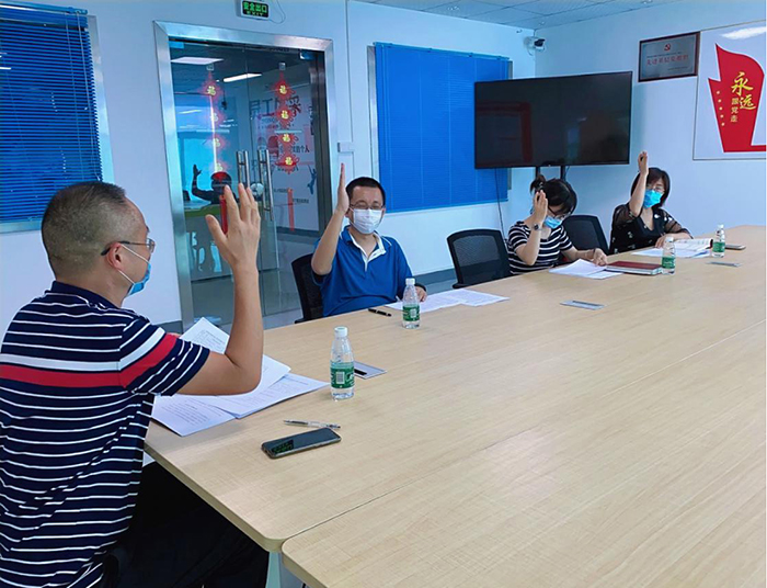 15:30黨員大會開始。在黨支部書記陶希賢帶領下,全體參會黨員認真學習“第一議題”。作為基層黨組織,我們要結合鞏固和深化“不忘初心、牢記使命”主題教育成果,認真學習習近平新時代中國特色社會主義思想和習近平總書記重要講話精神有關內容。進一步增強“四個意識”、堅定“四個自信”、做到“兩個維護”,以對黨和人民高度負責的精神,全面貫徹黨的十九大和十九屆二中、三中、四中全會精神,深入學習貫物習近平總書記對廣東、深圳工作的重要講話和指示批示精神,為廣東實現(xiàn)“四個走在全國前列”、當好“兩個重要窗口”,為實現(xiàn)“兩個一百年”奮斗目標和中華民族偉大復興的中國夢作出新的更大貢獻。