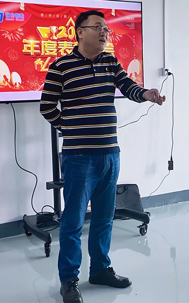聯(lián)合智能總經(jīng)理講話,在會(huì)議中姜總表示感謝各位同仁在2019年辛勤勞動(dòng),對(duì)公司盡心盡力,希望在2020年各位同仁能夠再創(chuàng)佳績(jī)。同事在會(huì)議上提出“面對(duì)挑戰(zhàn) 躬身入局”概念。